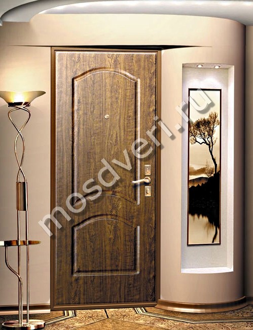 Двери металлические в квартиру из массива дерева — одни из самых долговечных в каталоге продукции компании Мосдвери. Натуральное дерево — экологичный, красивый и прочный материал, который для производства входных дверей используется редко из-за достаточно высокой цены. Но, по сравнению с синтетическими и прессованными материалами он значительно выигрывает почти по всем параметрам.